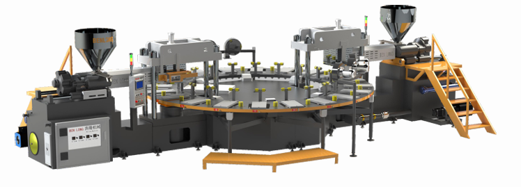 奔隆機(jī)械 | 高效節(jié)能圓盤式兩頭雙色鞋底射出成型機(jī)!